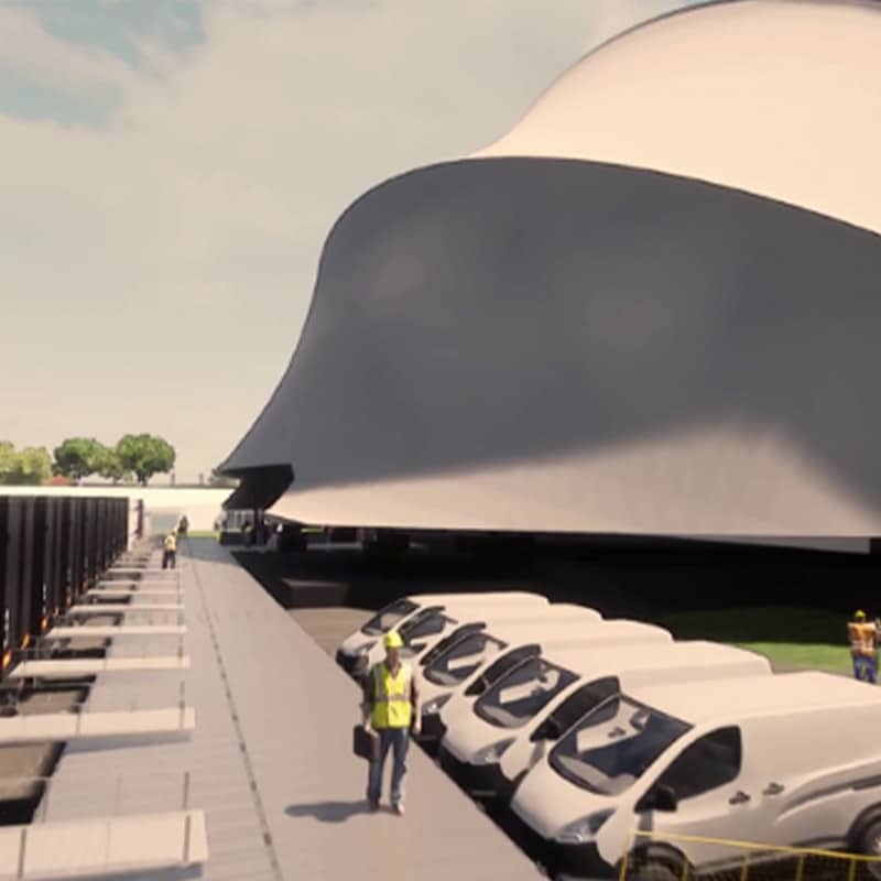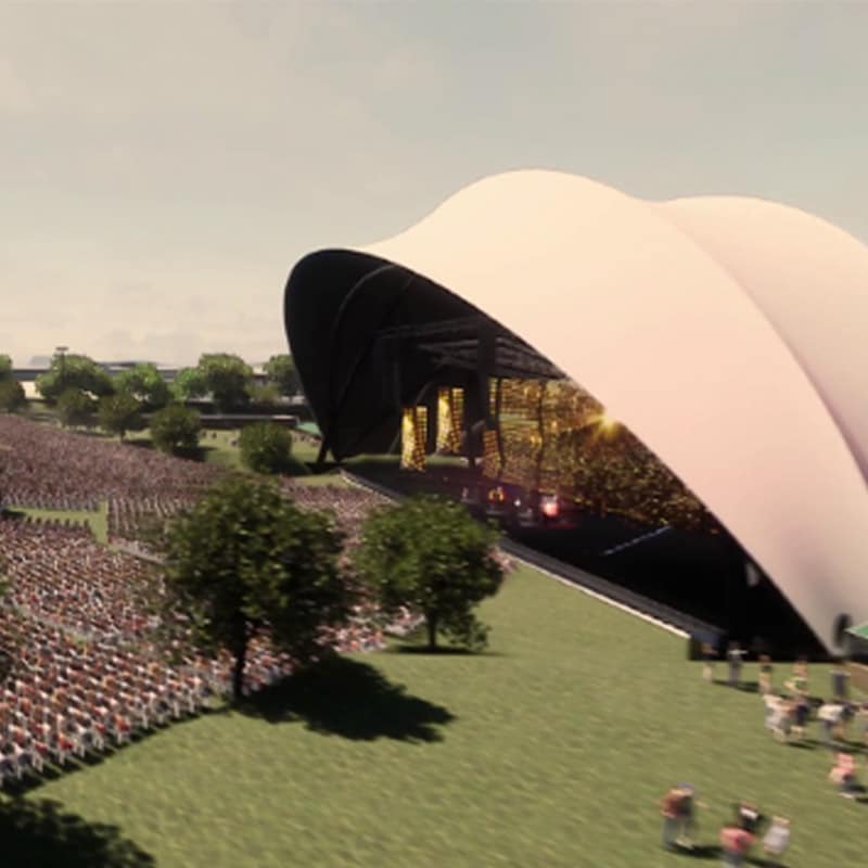 Stage, architectural roof canopy and permanent dressing rooms.
